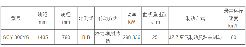 • 产品名称: GCY-300YG重型液力轨道牵引车